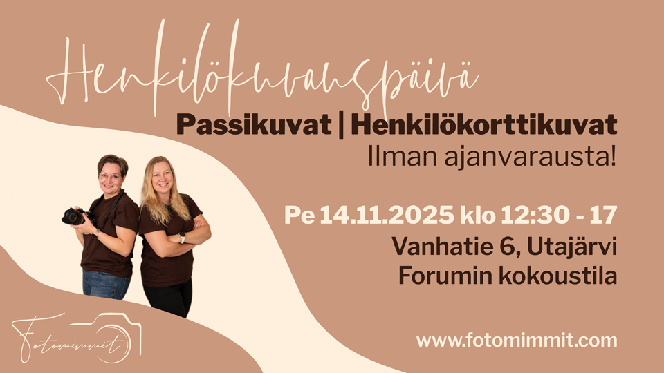 Perjantaina 14.11. pääsee taas Utajärvellä passi- tai henkilökorttikuviin ilman ajanvarausta klo 12:30-17 välillä.